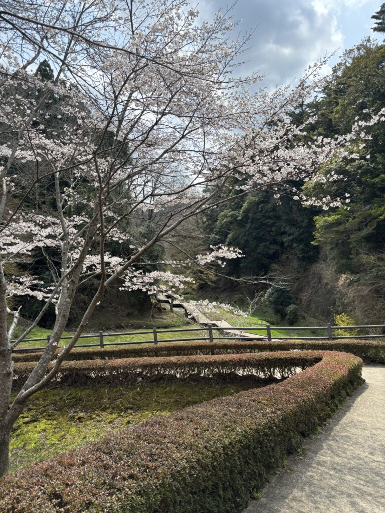 濃溝の滝がある「清水渓流広場」に到着すると、そこはまさに春爛漫。桜が満開で、駐車場も溢れんばかりでしたが、ここでもまた運良く一台分のスペースが!吉方位へ向かうと、こうした小さな幸運が重なることが多く、心が弾みます。