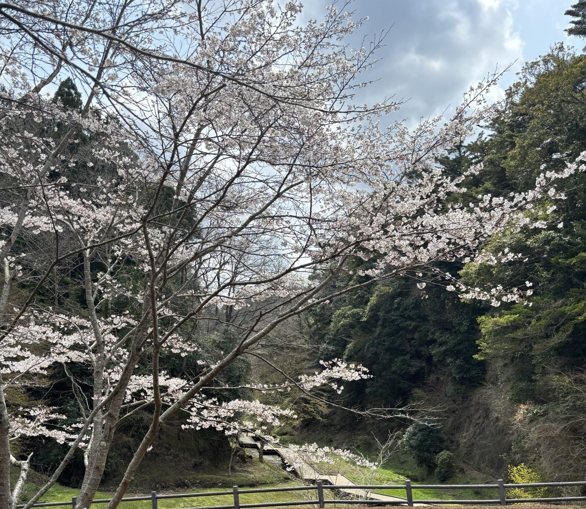 濃溝の滝がある「清水渓流広場」に到着すると、そこはまさに春爛漫。桜が満開で、駐車場も溢れんばかりでしたが、ここでもまた運良く一台分のスペースが!吉方位へ向かうと、こうした小さな幸運が重なることが多く、心が弾みます。
